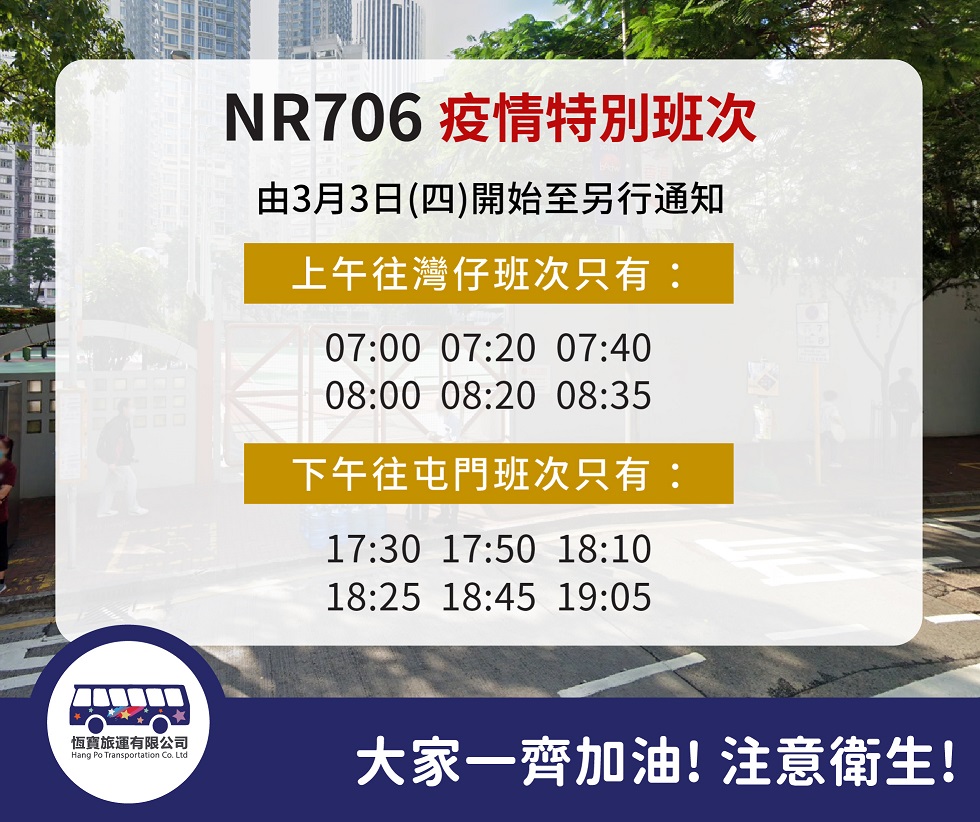 各單位注意 #NR706 #恆寶 #恆寶旅運 #班次時間