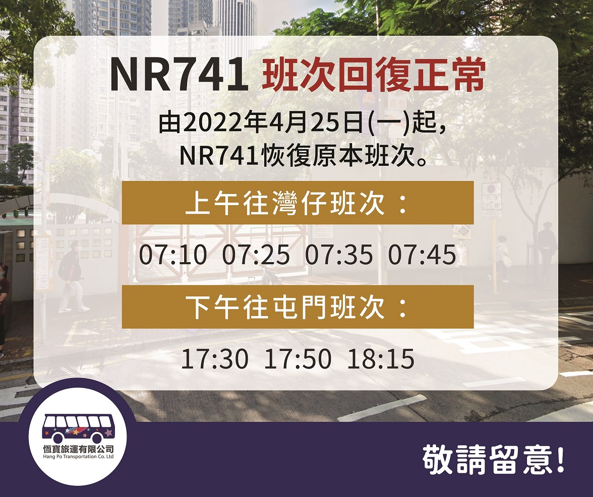由2022年4月25日(一)開始,早上及下午班次恢復正常。