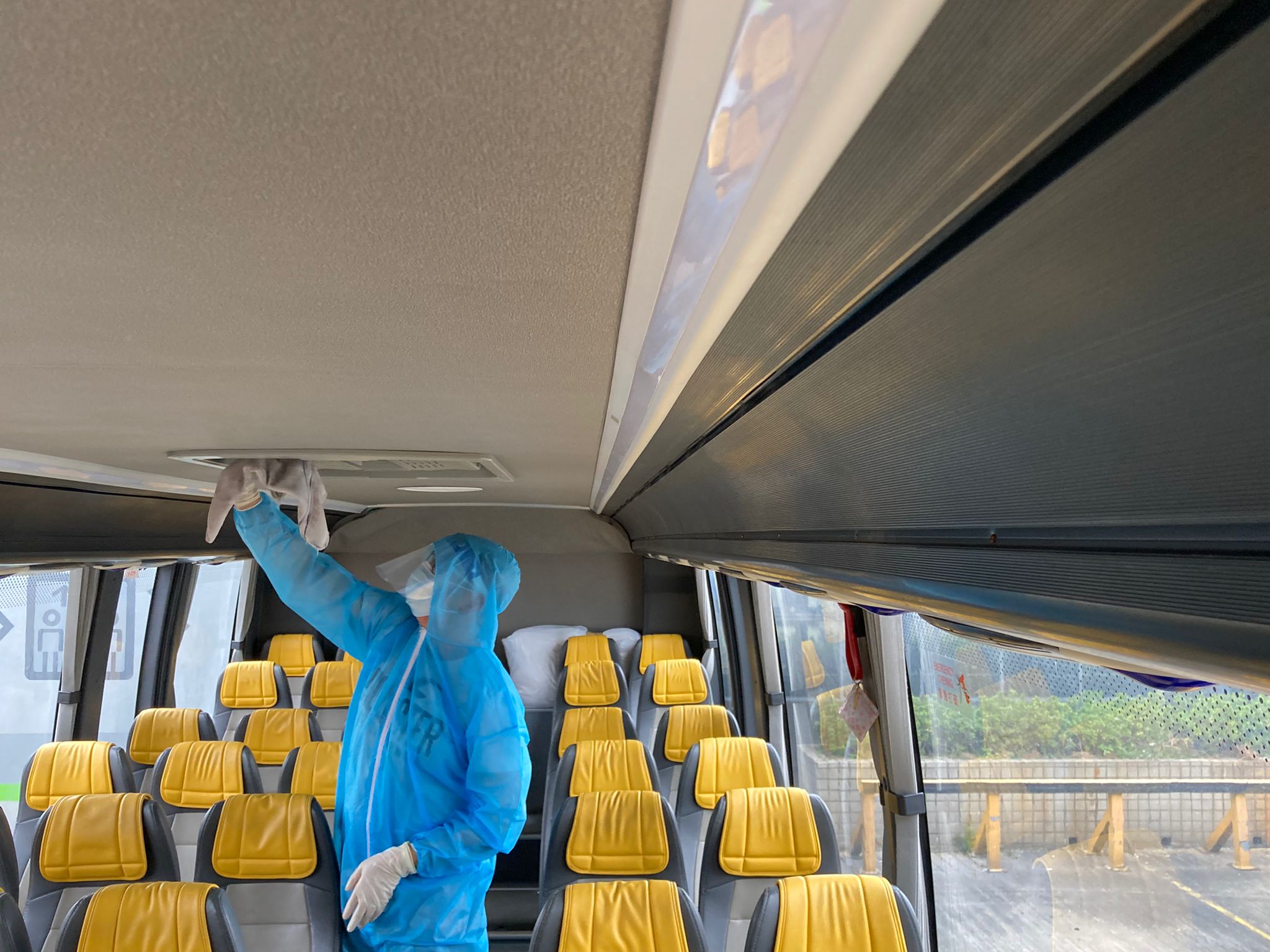 After completing an order, the bus captain will use the time between the order and the order to wipe the interior of the bus, such as handrails, windows, seats, etc., with disinfectant to eliminate the bacteria and viruses attached to the objects and reduce the risk of spreading the New Coronavirus.