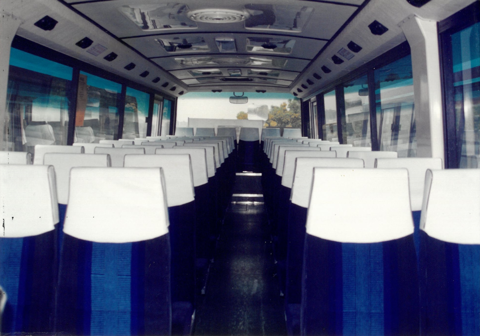 而车内的座位配置,在两图对比下,亦看到旅游巴业界不断创新的证明,以住的旅游车座位采用绒布,现在的是采用获欧盟认证的皮椅,靠背设计亦得到改良,更符合人体工学,适合长途旅程。